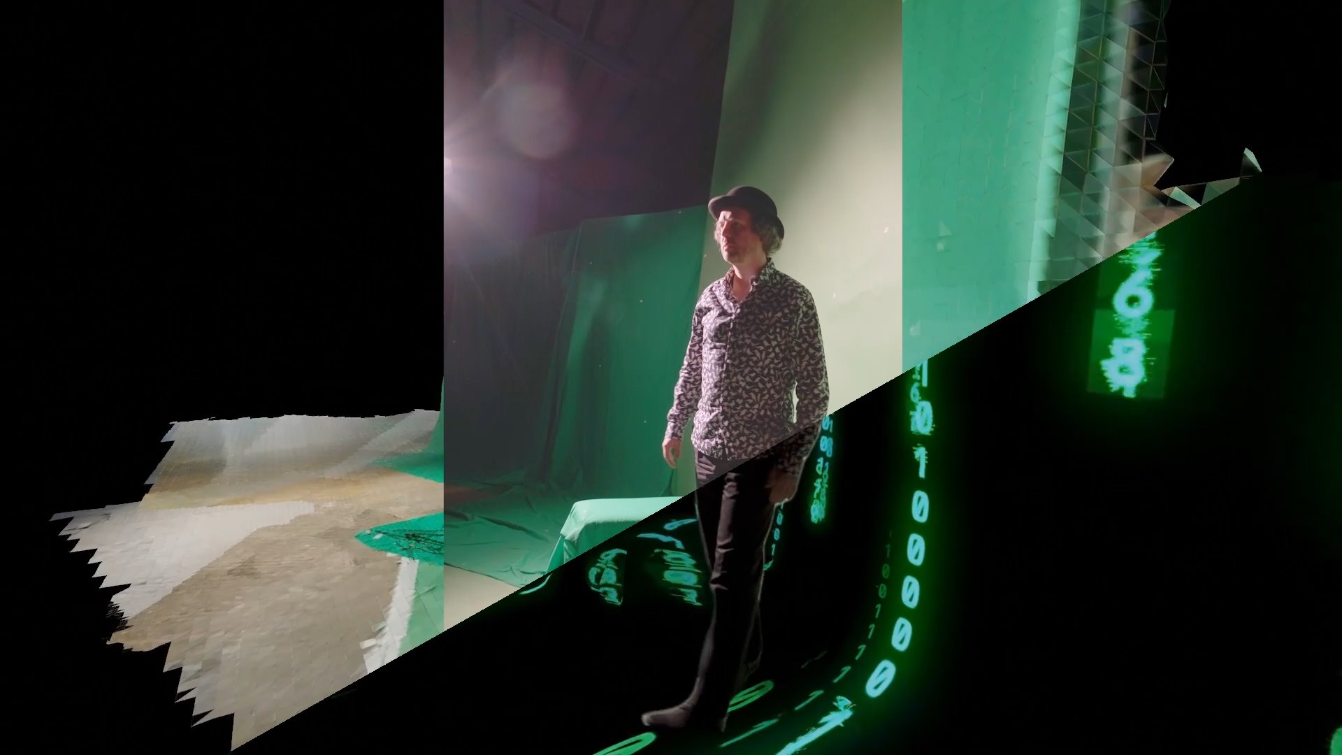 We deveoped the scenario together, and then I picked it up from there. I did all the preproduction. I was directing the shoot and shooting at the same time (this was hard). I then postprocessed the footage and created all this virtual world in Blender. It was really a big project for a one-man show like me — usually things like this are made in studios, and at a much larger budget.